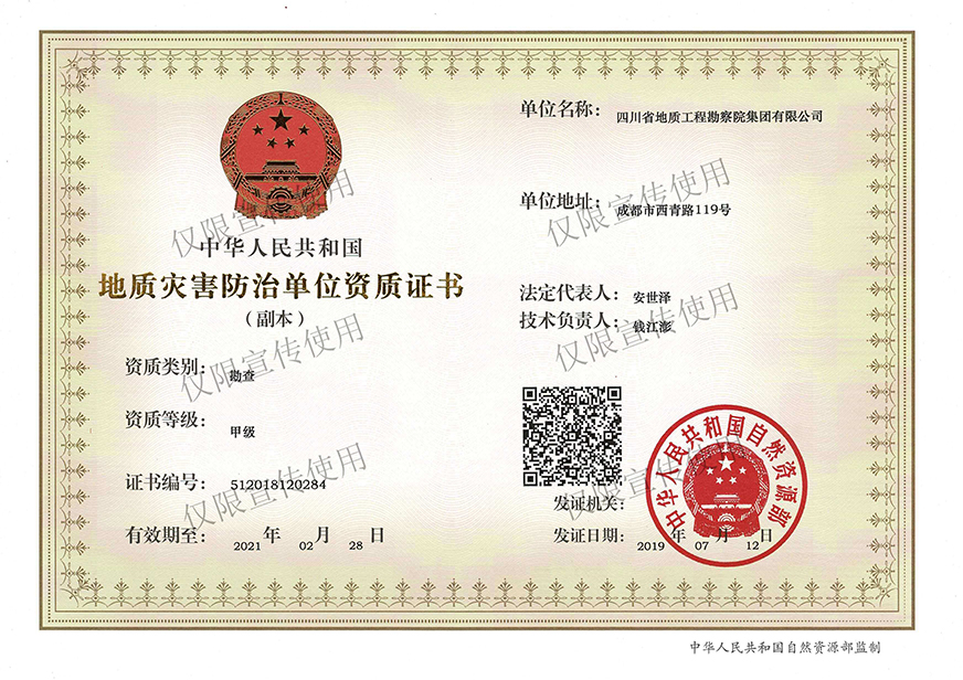 川勘集團(tuán)擁有工程勘察綜合類,地質(zhì)勘查,測(cè)繪,地質(zhì)災(zāi)害評(píng)估和治理工程勘查設(shè)計(jì)、施工、監(jiān)理,城鄉(xiāng)規(guī)劃編制,水利行業(yè)設(shè)計(jì),環(huán)境工程專業(yè)設(shè)計(jì),水利水電工程、建筑工程、市政公用工程、公路工程施工總承包,地基基礎(chǔ)工程、建筑裝修裝飾工程、環(huán)保工程專業(yè)承包,檢驗(yàn)檢測(cè)機(jī)構(gòu)(CMA),水資源論證,水文與水資源調(diào)查評(píng)價(jià),土地規(guī)劃?rùn)C(jī)構(gòu),四川省環(huán)境污染防治工程等級(jí)評(píng)價(jià)、地震安全評(píng)價(jià)等甲(壹)、乙(貳)級(jí)資質(zhì)、行業(yè)認(rèn)證30余項(xiàng)。