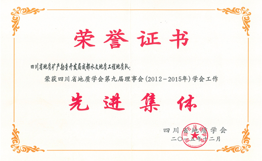 我隊榮獲第九屆四川省地質(zhì)學(xué)會先進(jìn)集體榮譽(yù)稱號