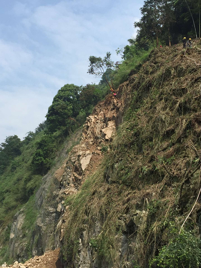 經(jīng)項目組清理路面跨塌土石方后,318國道已于19日晚恢復通車。目前,項目組正在清除坡體上殘留崩塌體、安裝主動防護網(wǎng)。