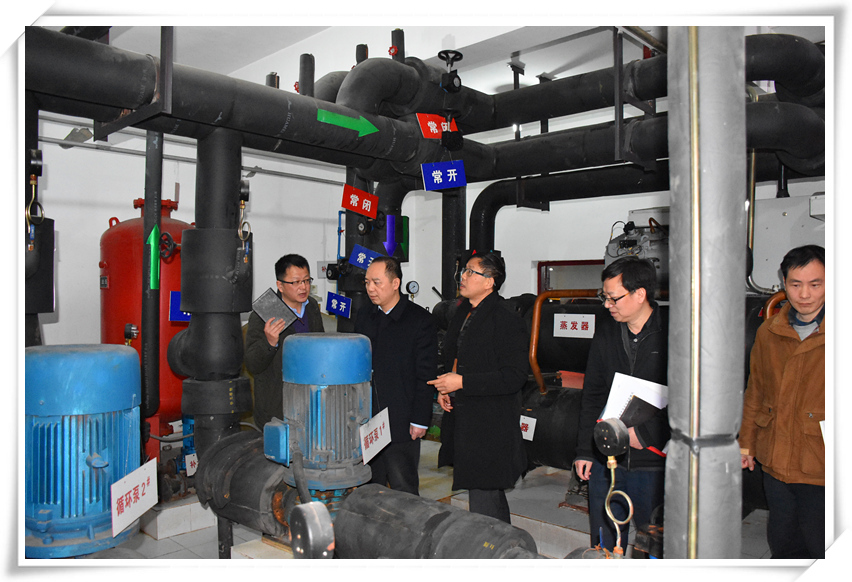 1月12日上午,成都市國(guó)土資源局黨組書記、局長(zhǎng)胡斌一行來(lái)我院調(diào)研指導(dǎo)工作,詳細(xì)詢問(wèn)并了解成都市淺層地溫能的開(kāi)發(fā)利用情況。在院領(lǐng)導(dǎo)的陪同下,胡斌局長(zhǎng)一行參觀考察了我院設(shè)計(jì)建設(shè)的省級(jí)可再生能源公共建筑示范工程——成都水文隊(duì)科研用房地源熱泵中央空調(diào)工程。