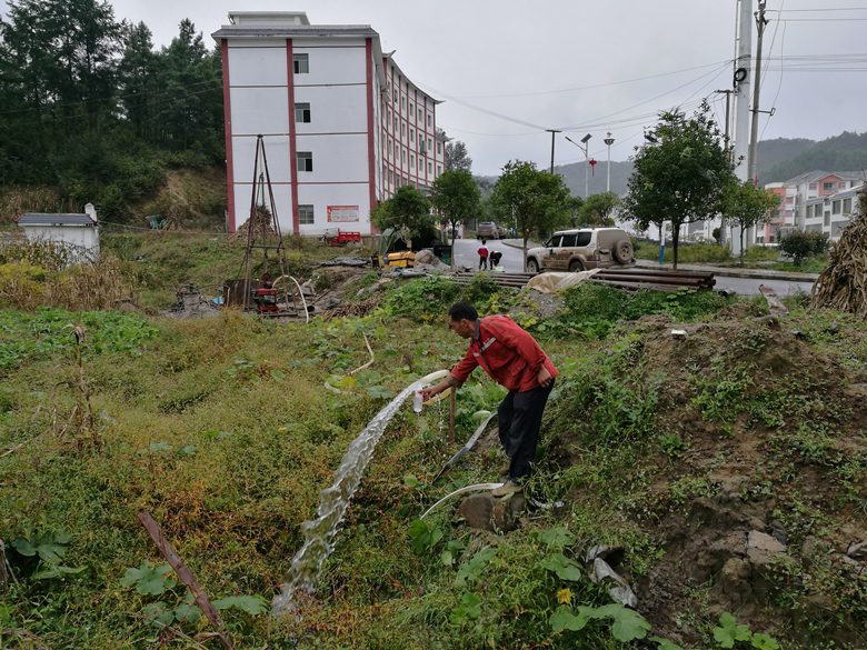 專業(yè)引領(lǐng),探采結(jié)合,成井出水。項(xiàng)目組充分發(fā)揮我院水文地質(zhì)、水文物探、鉆探多專業(yè)優(yōu)勢(shì),技術(shù)人員協(xié)同攻關(guān),首先通過地質(zhì)分析尋找富水地段和儲(chǔ)水構(gòu)造。然后布置物探進(jìn)行勘查。最后針對(duì)工作區(qū)地層巖性和地質(zhì)構(gòu)造特點(diǎn),進(jìn)行成井設(shè)計(jì),并按設(shè)計(jì)進(jìn)行施工。項(xiàng)目組設(shè)計(jì)的4口探采結(jié)合井已全部完成,成井率100%。尤其是布設(shè)在貴州省赫章縣安樂溪鄉(xiāng)鄉(xiāng)政府的探采結(jié)合井(編號(hào):ZK29),該井井深160.2米,水位位于井口,微承壓,出水量500立方米/天左右時(shí)的穩(wěn)定降深不到30米,該井可補(bǔ)充安樂溪鄉(xiāng)集中供水,惠及人口近萬(wàn)人,有效的緩解了安樂溪鄉(xiāng)群眾飲水困難的問題,受到了安樂溪鄉(xiāng)政府和赫章縣國(guó)土資源局的高度贊揚(yáng)。