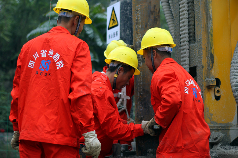 為了高質(zhì)量、高水平、按期圓滿完成所擔(dān)負(fù)的科研任務(wù),我院組建了技術(shù)實(shí)力強(qiáng)勁的科研、施工隊(duì)伍,并力求在多項(xiàng)技術(shù)研究、施工工藝、儀器配備上提升科技含量,取得進(jìn)一步的創(chuàng)新突破。在技術(shù)研究方面,從院屬水文地質(zhì)工程公司抽調(diào)一批長期從事水文地質(zhì)工作、已經(jīng)積累了豐富經(jīng)驗(yàn)的中青年技術(shù)骨干擔(dān)綱,老專家進(jìn)行指導(dǎo)。他們著眼于國際國內(nèi)同行業(yè)最新研究成果,充分運(yùn)用最近幾年在四川石化煉廠開展地下水監(jiān)測所取得的實(shí)踐經(jīng)驗(yàn),在對整個(gè)示范區(qū)6534平方公里內(nèi)頁巖氣井場的水文地質(zhì)條件進(jìn)行詳細(xì)調(diào)查的基礎(chǔ)上,結(jié)合采氣井與回注井建設(shè)運(yùn)行特征,針對巖溶地下水敏感地區(qū)、紅層砂泥巖缺水地區(qū)等不同的地下水類型區(qū)、地下水環(huán)境保護(hù)目標(biāo)等因素,反復(fù)分析研究,篩選出3個(gè)典型井場作為地下水監(jiān)測示范平臺,順利完成了第一階段的環(huán)境水文地質(zhì)勘查及監(jiān)測井布置、成井參數(shù)設(shè)計(jì)方案。在監(jiān)測井施工方面,他們著眼于環(huán)境保護(hù),著眼于推廣應(yīng)用由省級地勘單位發(fā)展能力提升專項(xiàng)資金購買的XFS-600履帶式多功能水井鉆機(jī)(全液壓潛孔錘鉆進(jìn)鉆機(jī)),配套高壓清洗機(jī)及世界領(lǐng)先技術(shù)的美國壽力空氣壓縮機(jī),按照安全文明工地標(biāo)準(zhǔn)組織施工,同時(shí)與傳統(tǒng)回旋鉆機(jī)、CZ系列沖擊鉆機(jī)進(jìn)行大氣揚(yáng)塵污染程度、場地泥漿污染程度、施工進(jìn)度、施工成本等對比研究,為今后更加廣泛使用先進(jìn)設(shè)備、環(huán)保工藝,以及節(jié)能減排、降耗增效提供基礎(chǔ)資料。在監(jiān)測儀器配備方面,他們著眼于引進(jìn)國際上性能穩(wěn)定、參數(shù)較多、性價(jià)比最優(yōu)的在線監(jiān)測儀器,研究使用太陽能裝置作為監(jiān)測儀器動(dòng)力,使用互聯(lián)網(wǎng)作為單位及管理研究人員專門接收終端,在整個(gè)體系中完全實(shí)現(xiàn)地下水水質(zhì)的實(shí)時(shí)跟蹤監(jiān)測。