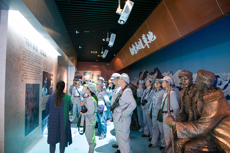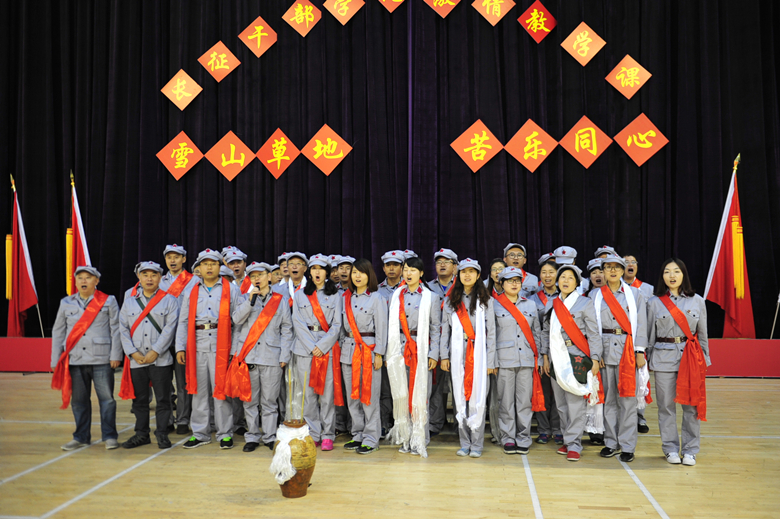 培訓(xùn)期間,隊(duì)伍打紅旗,學(xué)員穿紅軍服、戴紅軍帽、背紅軍包、纏綁腿、系皮帶、戴?;眨鲂辛嘘?duì)整齊有序,成為一支紅色勁旅。學(xué)員們通過“吃紅軍飯、唱紅軍歌、走紅軍路”的培訓(xùn)形式,經(jīng)過長征歷史理論教學(xué)、參觀馬爾康紅軍長征紀(jì)念館現(xiàn)場教學(xué)、過草地穿越日干喬大沼澤體驗(yàn)教學(xué),學(xué)習(xí)紅軍隊(duì)伍的堅(jiān)強(qiáng)斗志,體驗(yàn)紅軍長征中的艱難困苦。